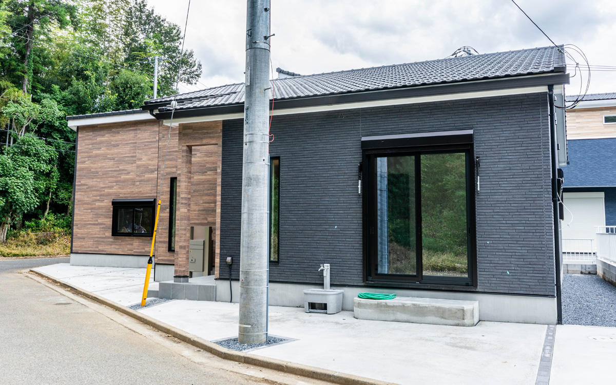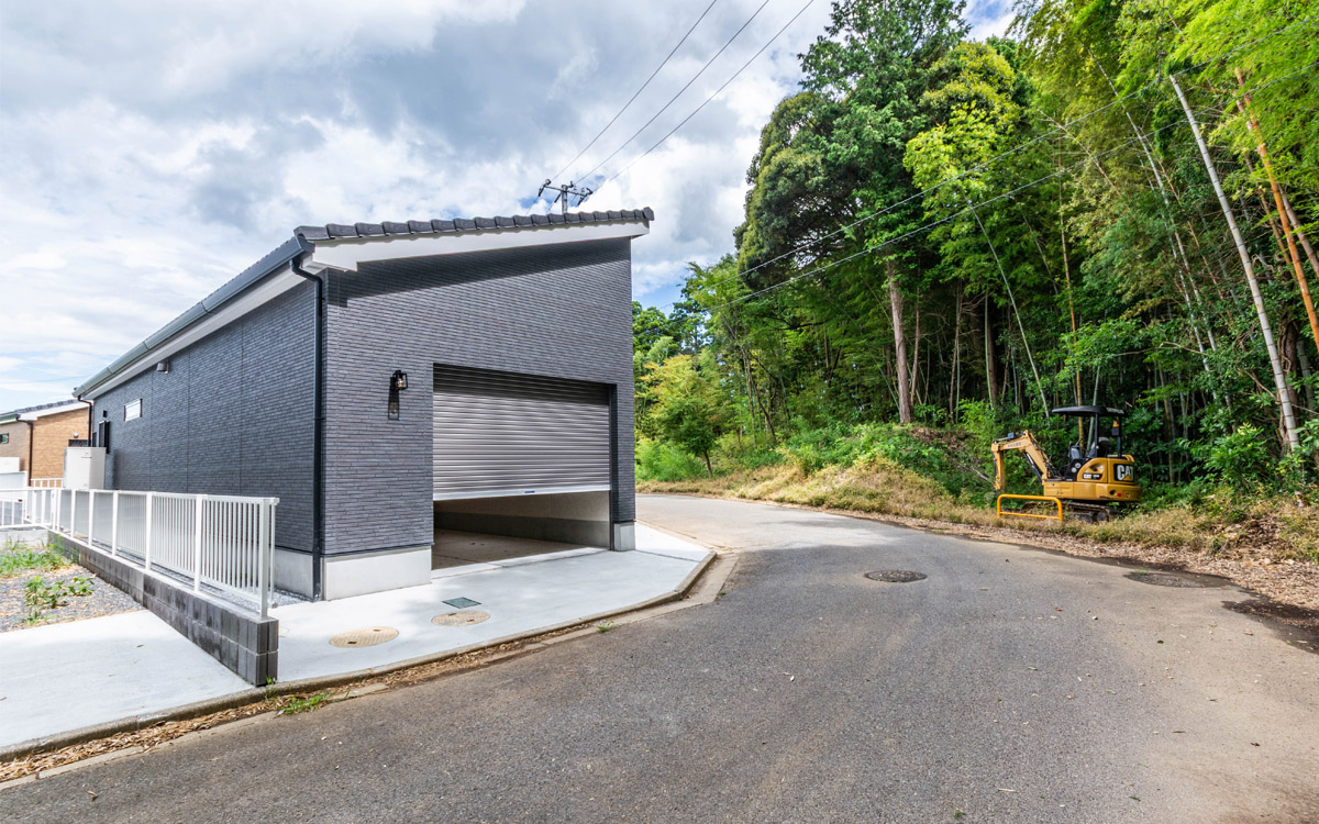 収納スペースも備えたガレージ付き平家