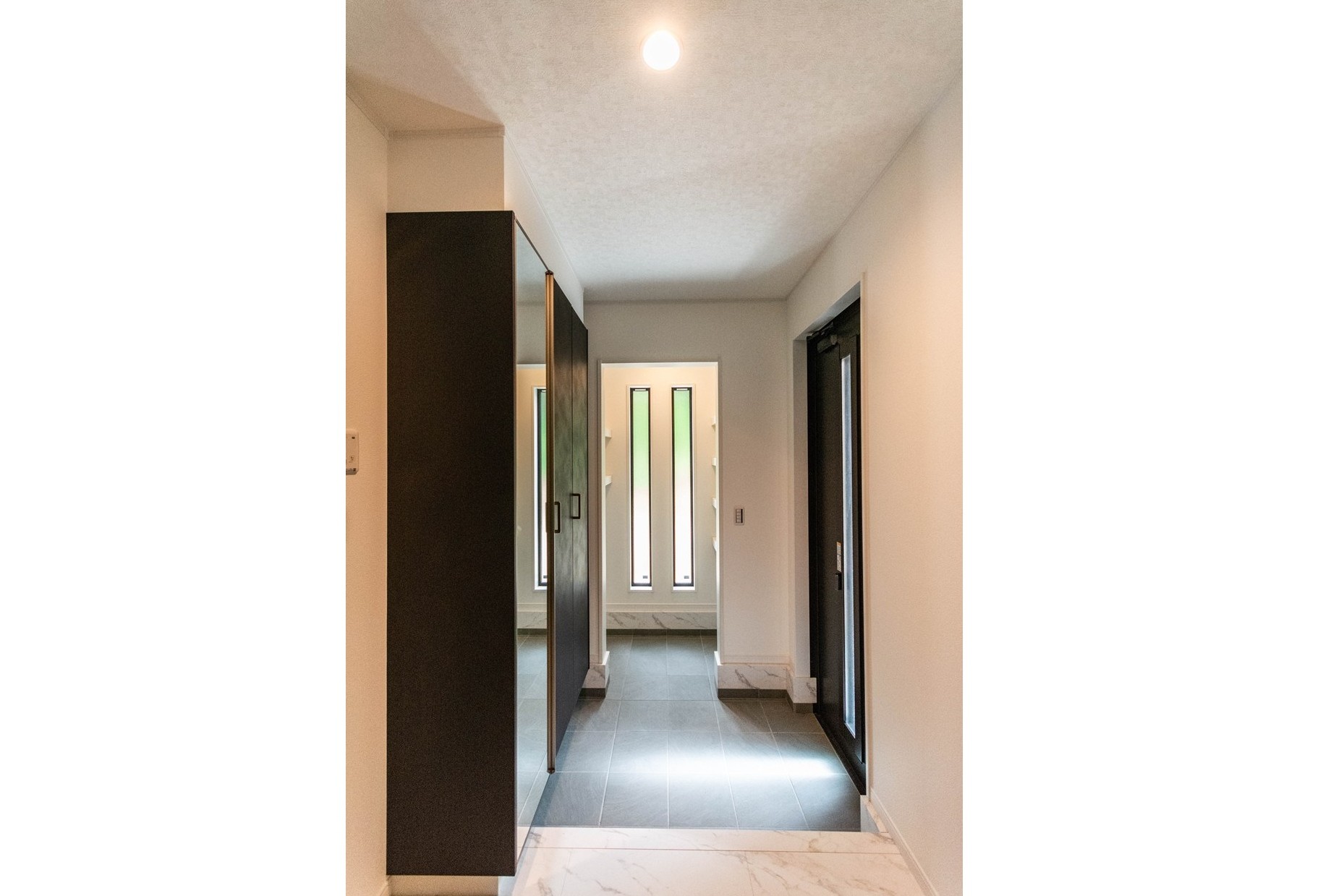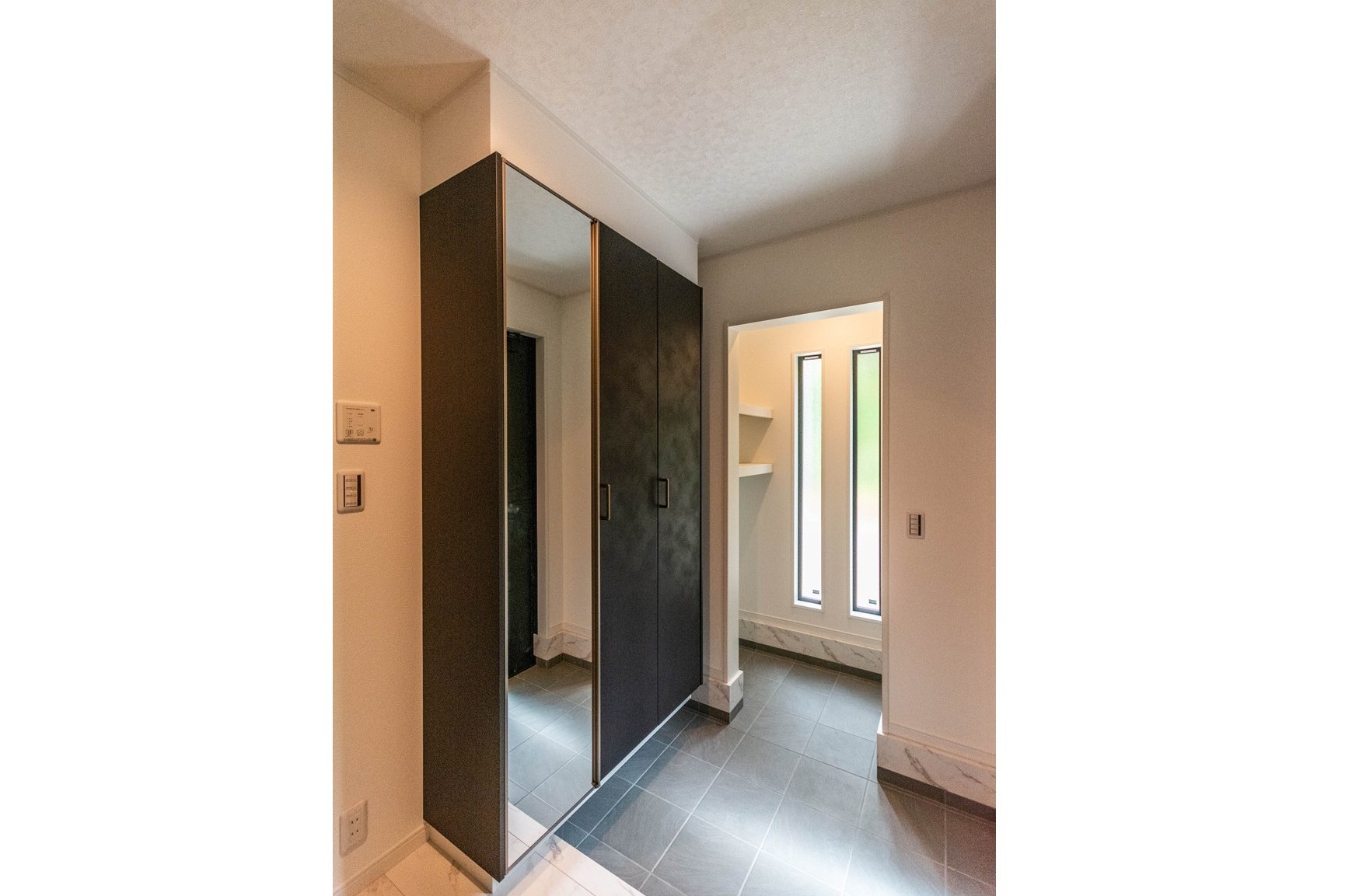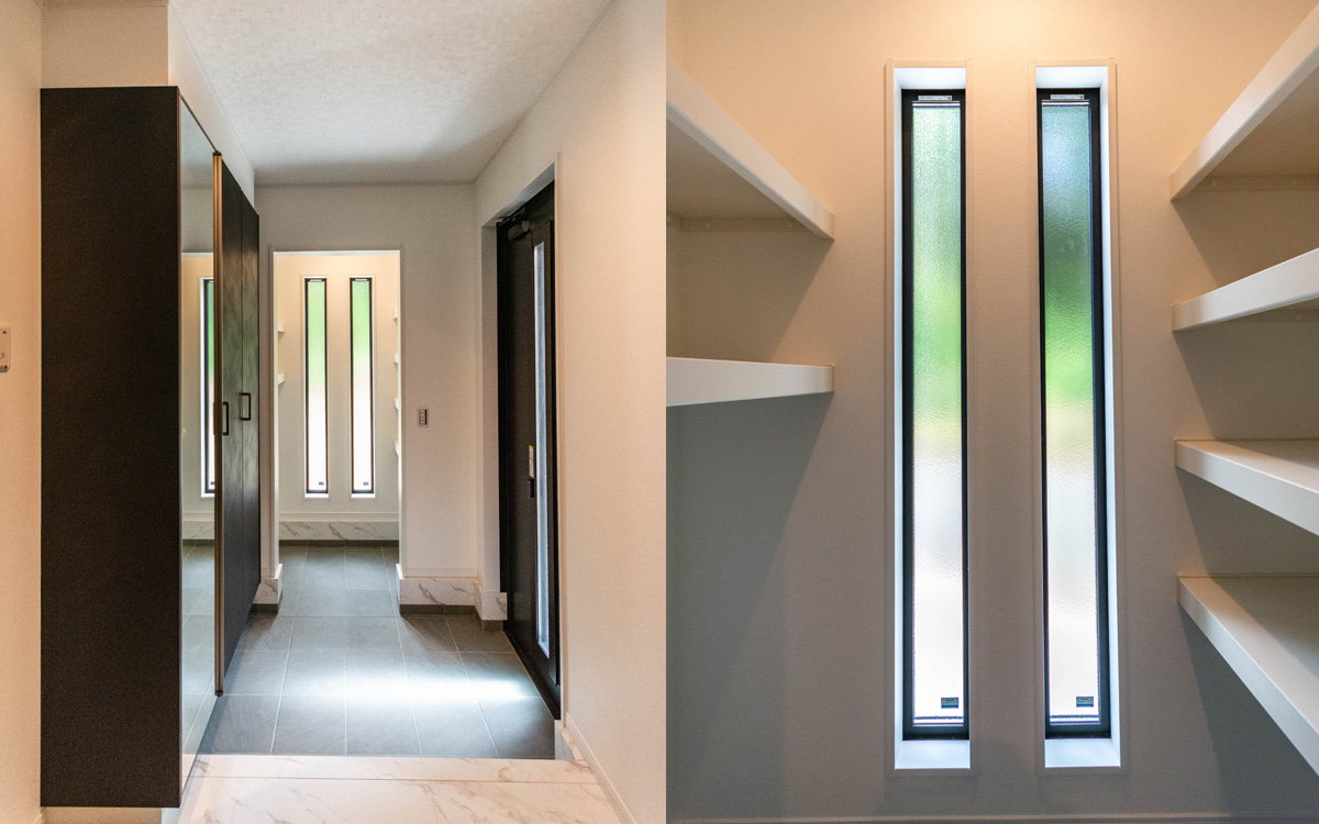 【玄関】窓からの採光がちょうど良く、シューズインクローゼットも設置。