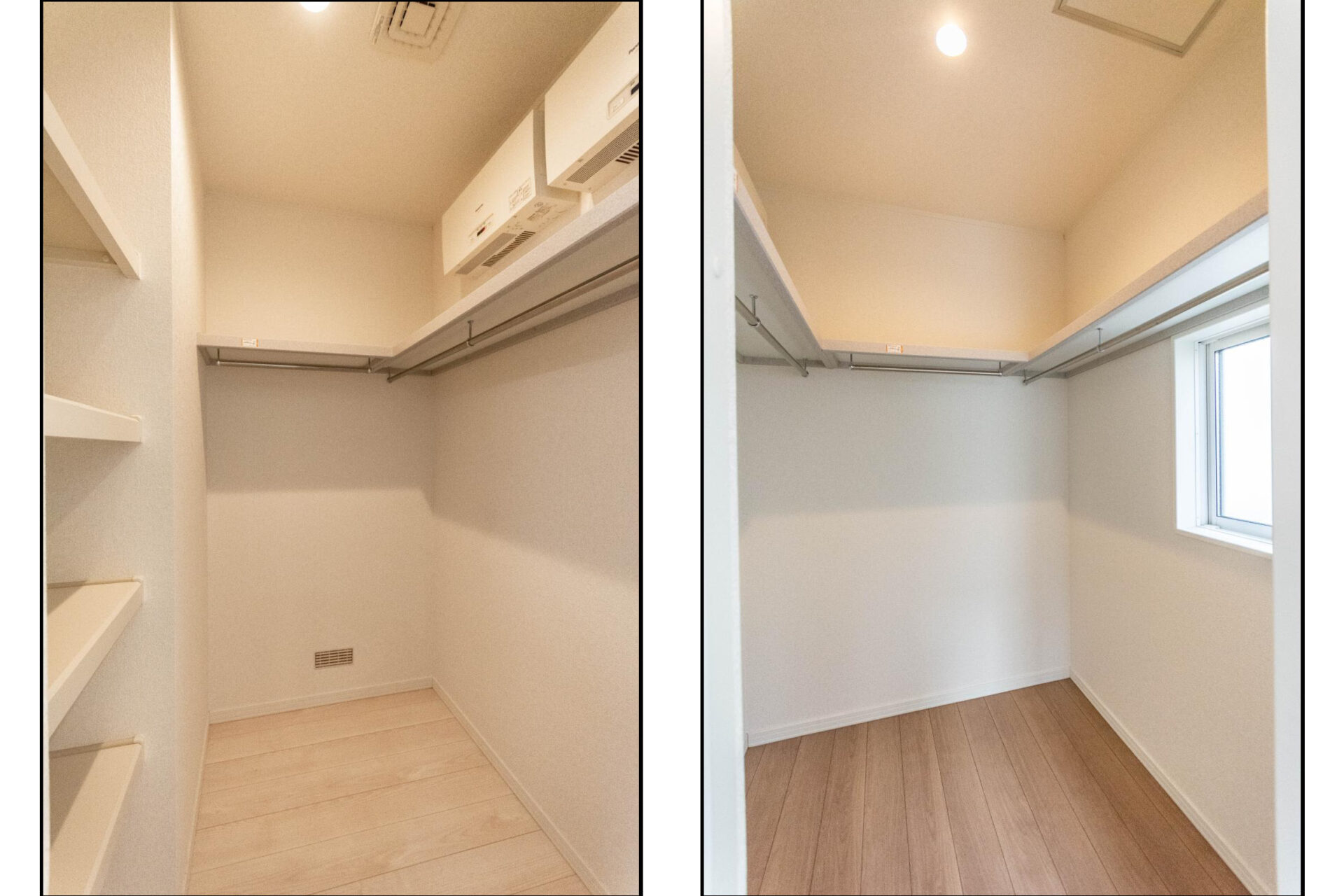 【WIC】ウォークインクローゼット内は、壁に沿ってハンガーポールが取り付けられており使い勝手が良いつくりです。