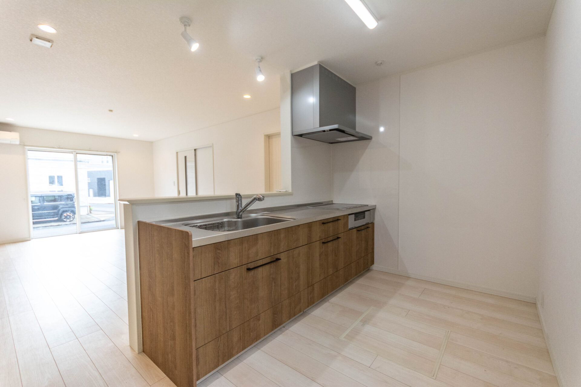 【リビング】明るく開放的なリビング!キッチンからリビング全体が見渡せるので小さなお子様がいても安心です!